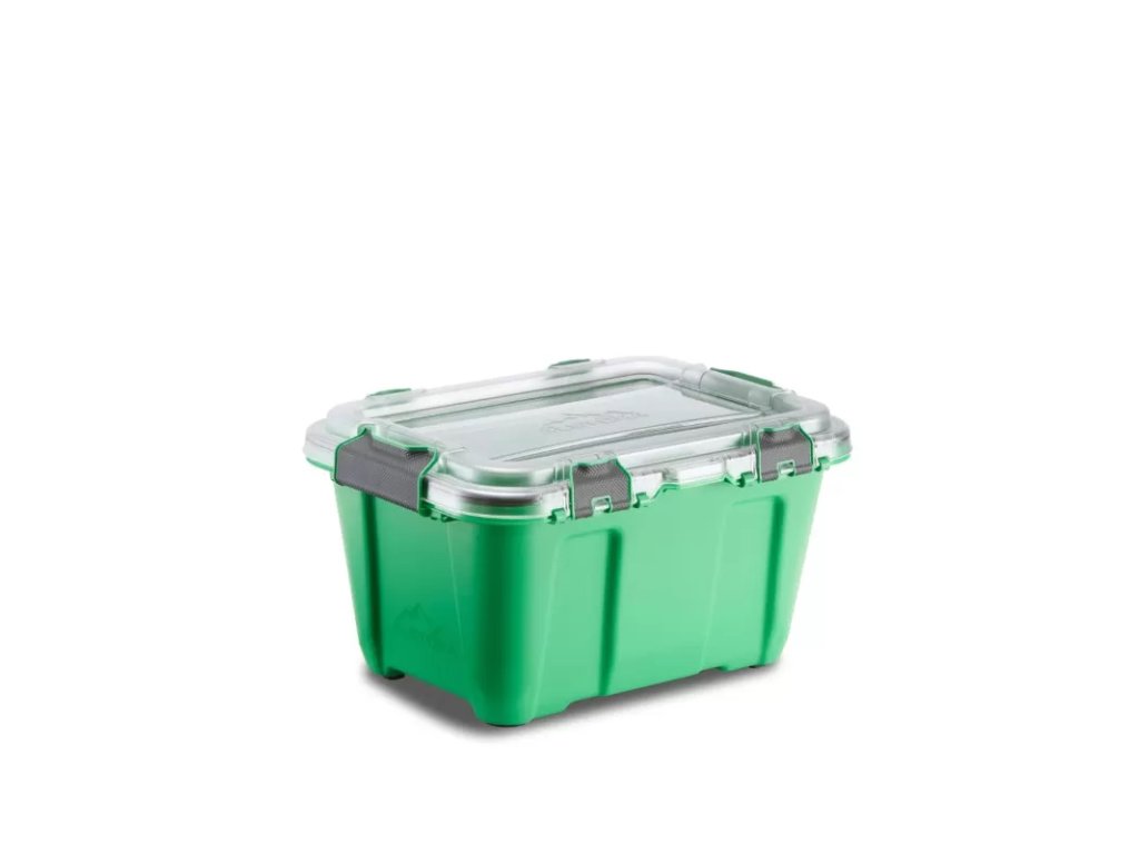 Vysoce odolný úložný box, 19 litrů (5 galonů) v barvě Grass Green. Nejmenší kontejner z této řady. Vhodný pro jakékoli použití, od průmyslového po domácí a venkovní.